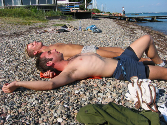 Gabe and Oskar tanning (with sunscreen of course!) on the beach near Louisiana.