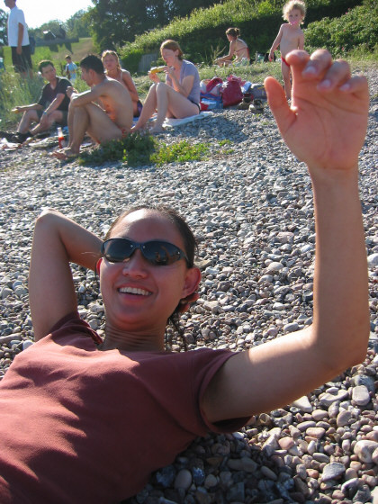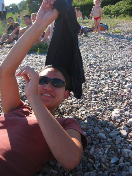 I think she's doing situps here, but maybe she's just trying to get me to stop taking candids.