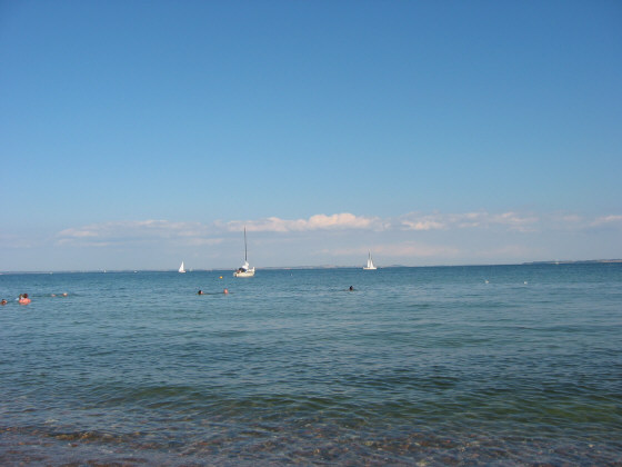 Out over the sea. In the distance, you can see the southwest coast of Sweden.