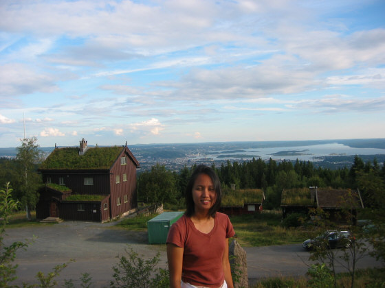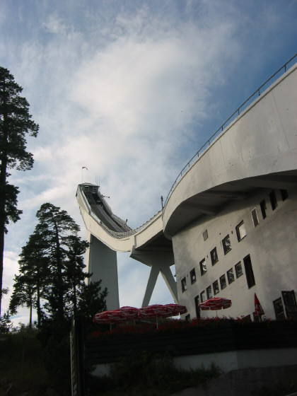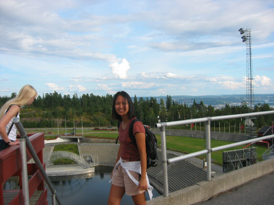 After dropping off Adam at the train station, Trond, Camilla, Elaine and I went up to the ski jump spot which was used for the Oslo Olympics, and continues to be used both for that purpose, and for concerts in the summer. We then sampled Norway's Indian food, which was actually pretty good. The Chinese food we had in Bergen wasn't quite up to snuff, but the Indian in Oslo was't bad at all.
