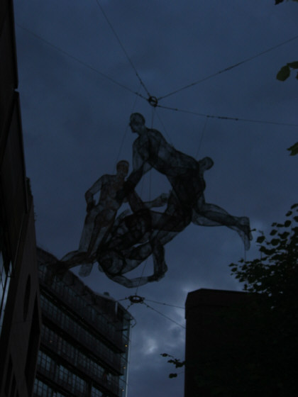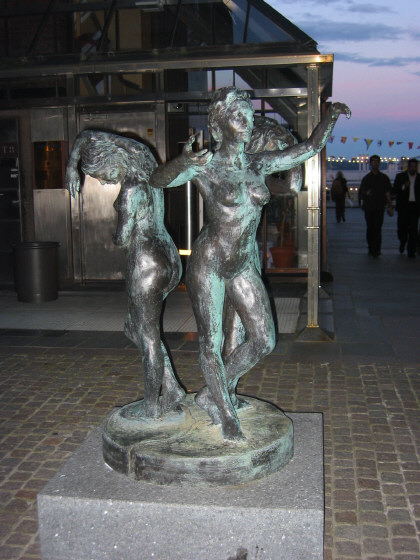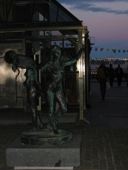 From there, we spent the day touring Oslo, without a camera (oops!). The highlight was definitely seeing the statues at Frogner Park: lots of human figures in interesting positions, and a far, far more extensive collection than anything I'd seen. It was also pretty amusing to see several groups cascading along the pedestrian walkway: first a band, advertising the Oslo Jazz Festival, and then floats with dancers from several Latin American countries. Salsa dancing was not something we expected to see in Norway, but we were certainly charmed by the whole thing.